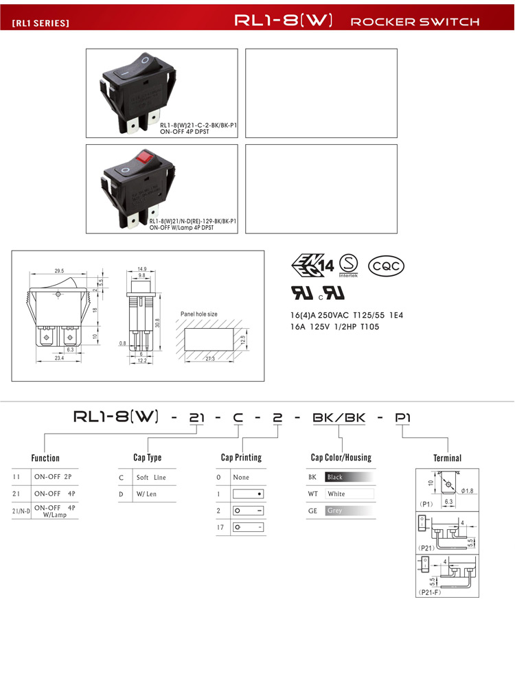 11:ON-OFF 2P,21:ON-OFF 4P,21/N-D:ON-OFF 4P W/Lamp