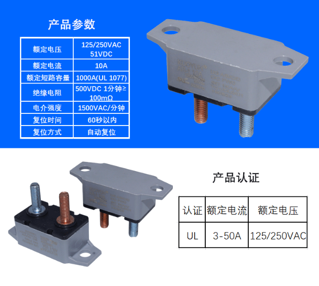 自动复位汽车电源过流小型电磁断路器