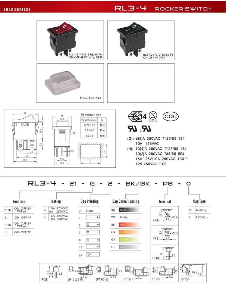 G:10A 125VAC 6A 250VAC,H:16A 125VAC 10A 250VAC