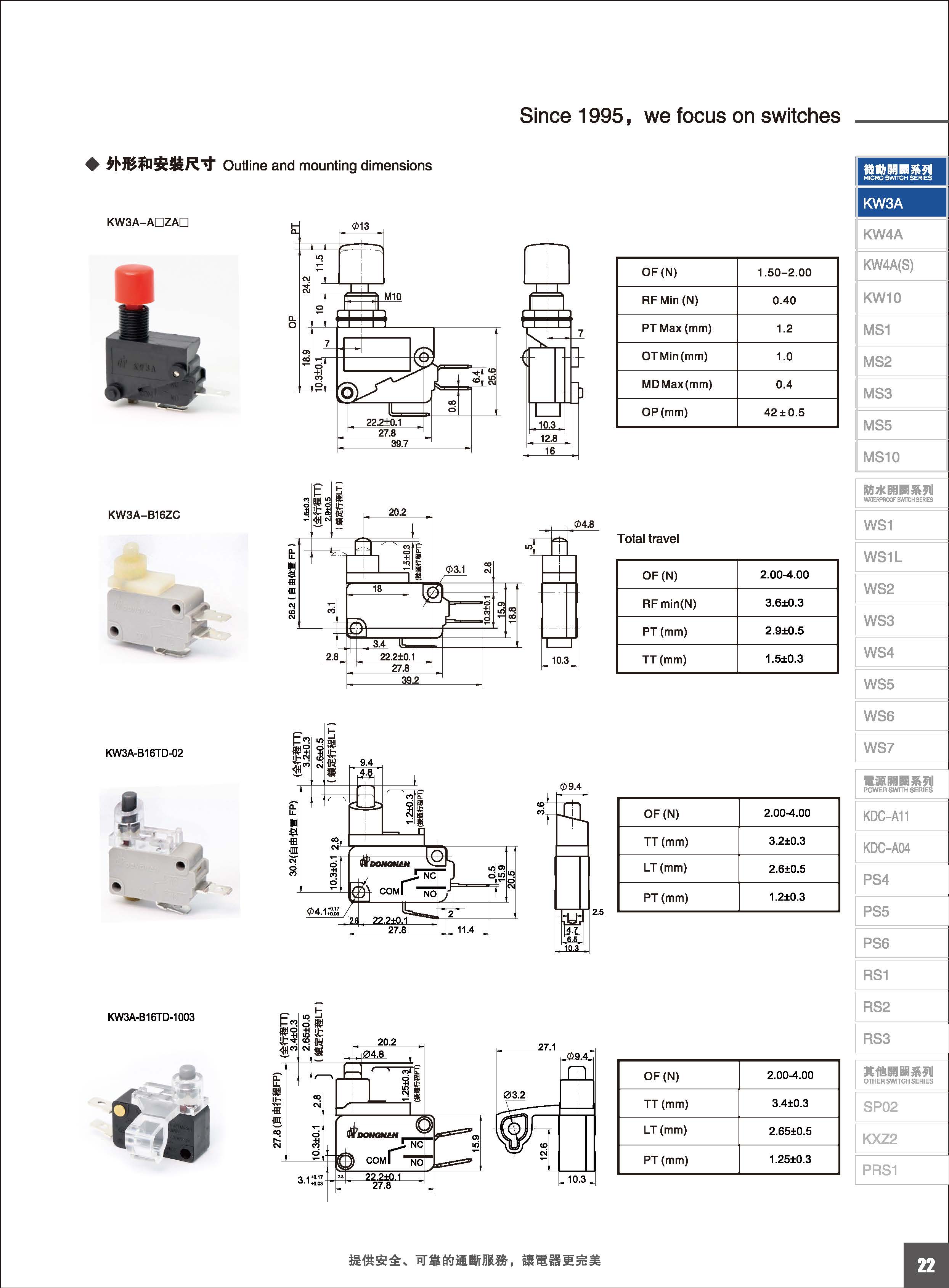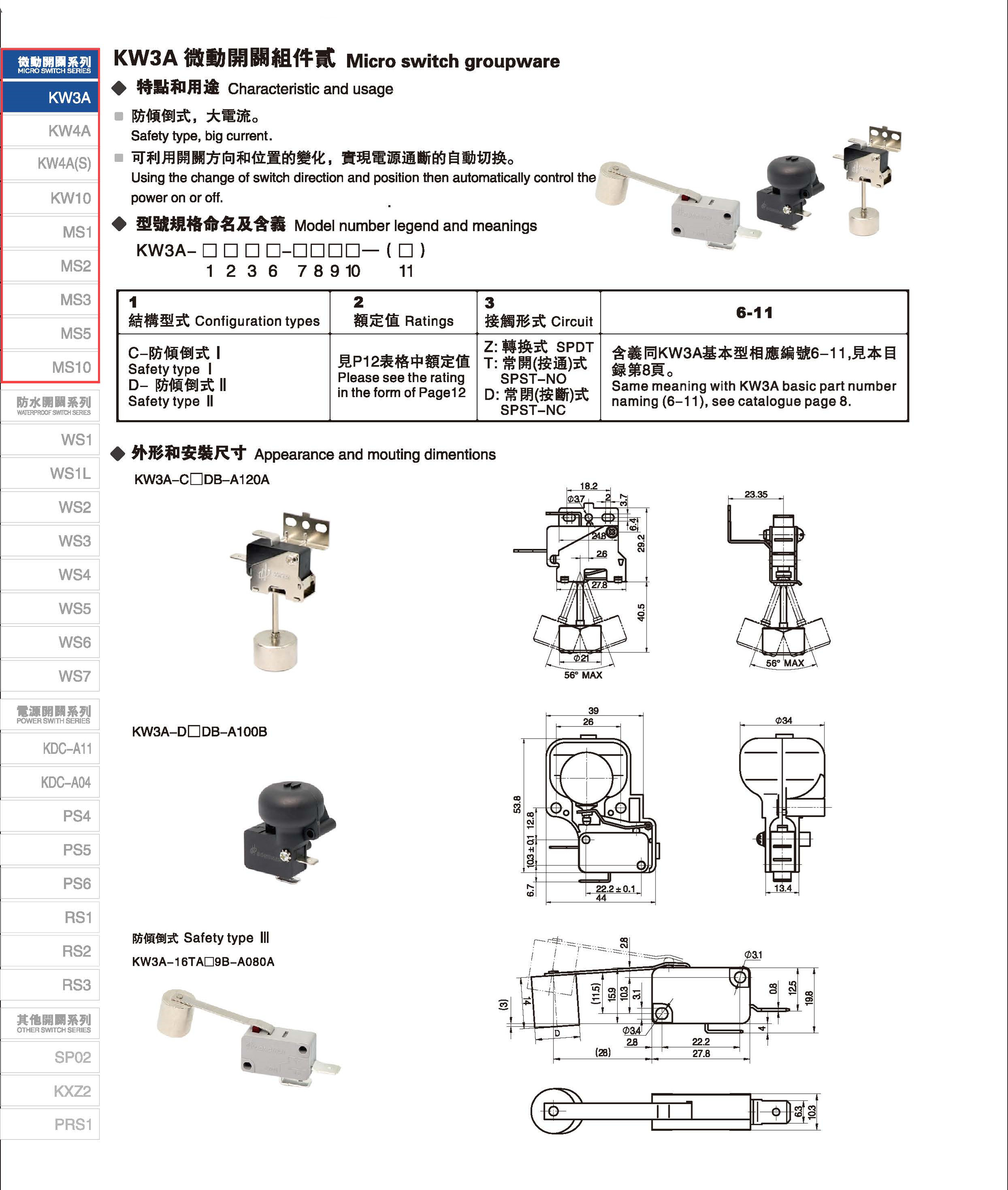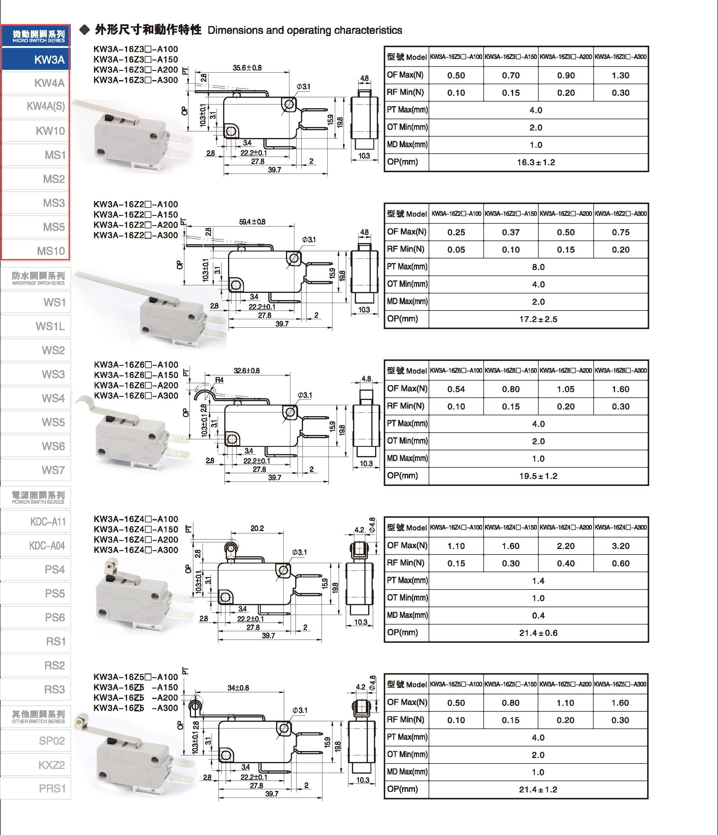 微动开关 Micro switches