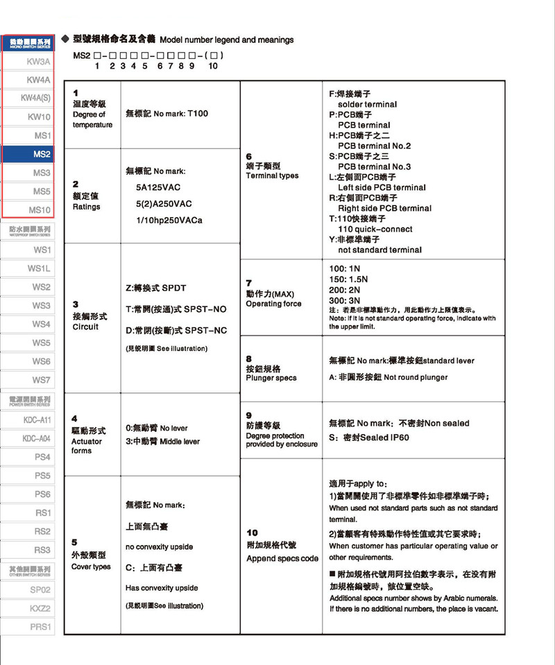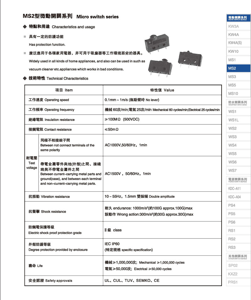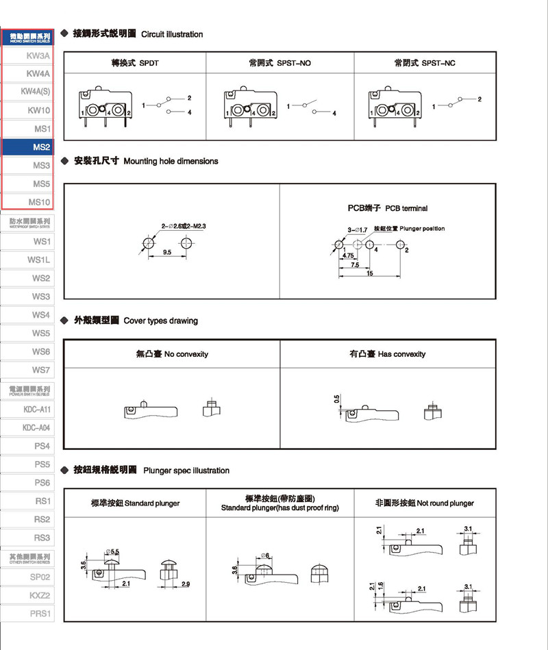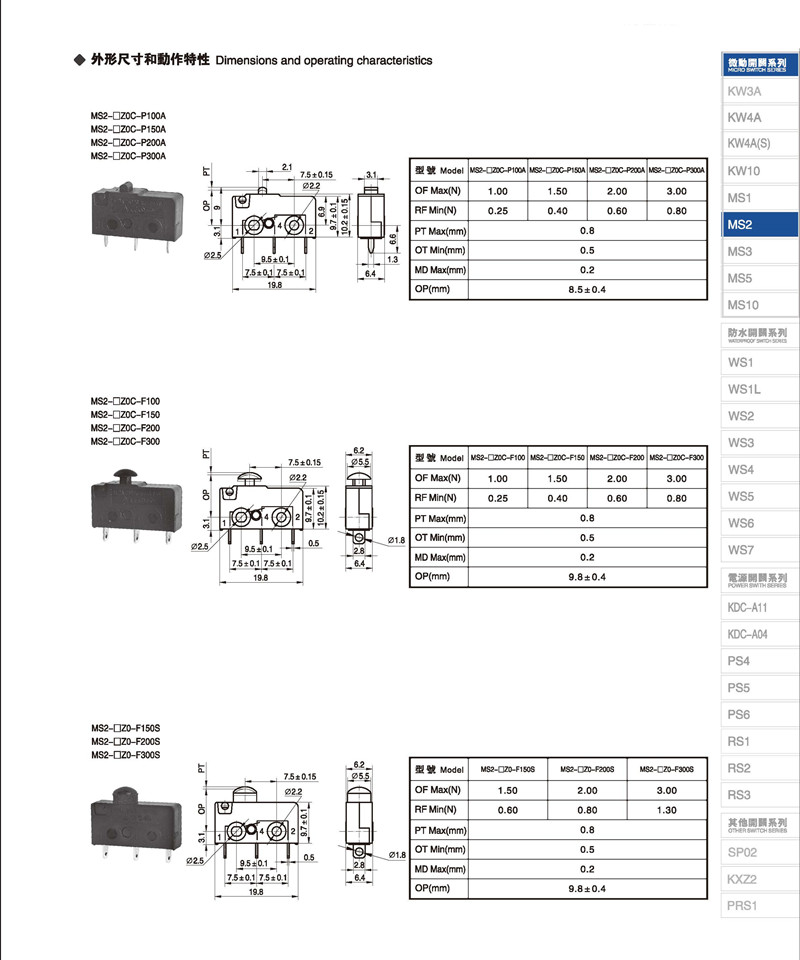 微动开关 Micro switches