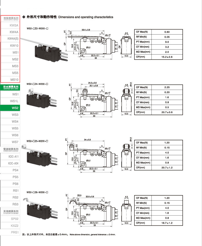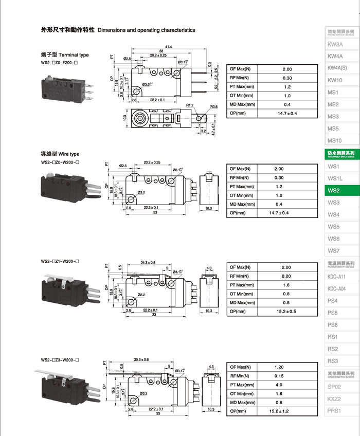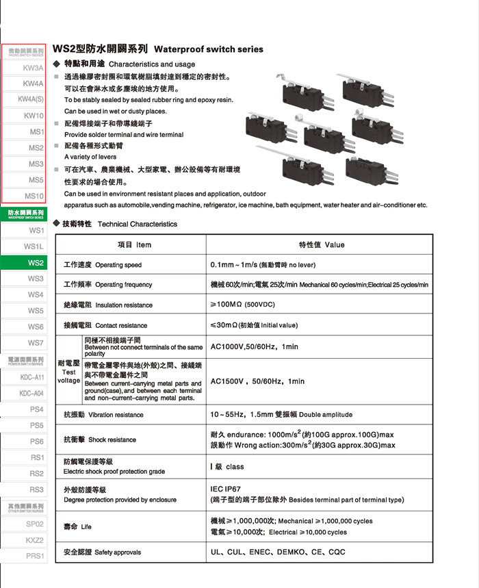 微动开关 Micro switches