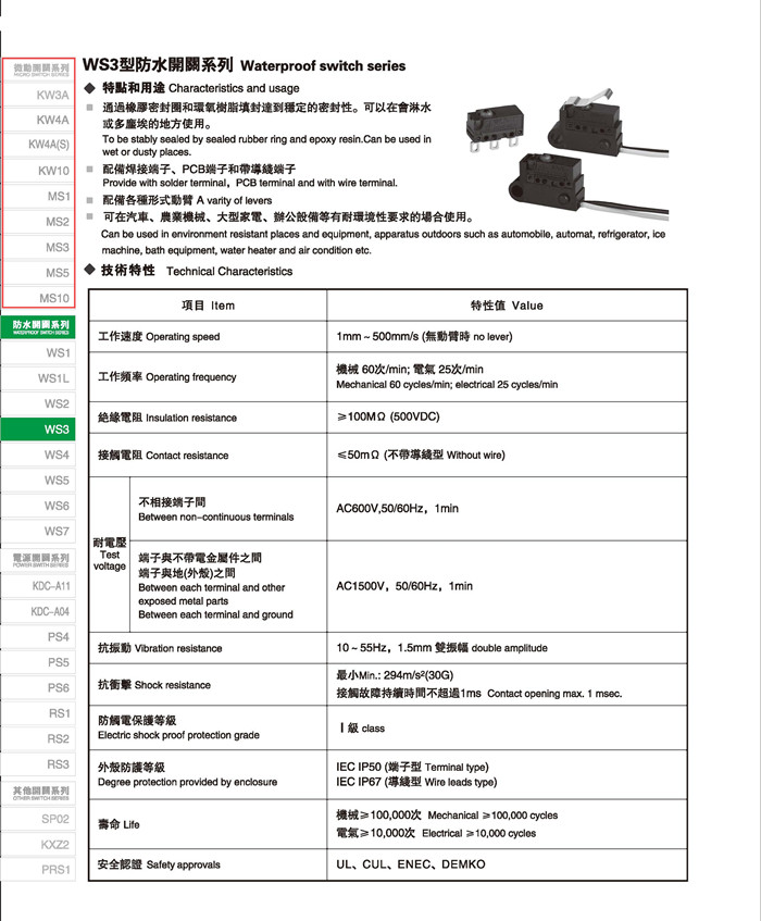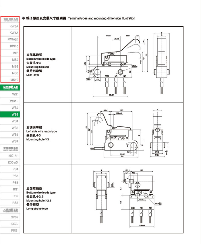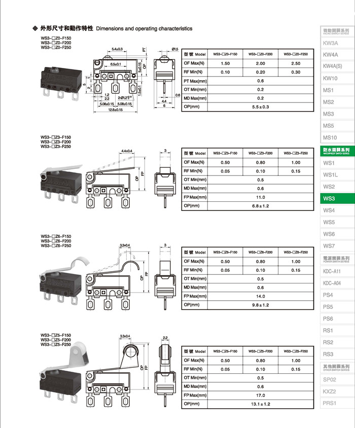 微动开关 Micro switches