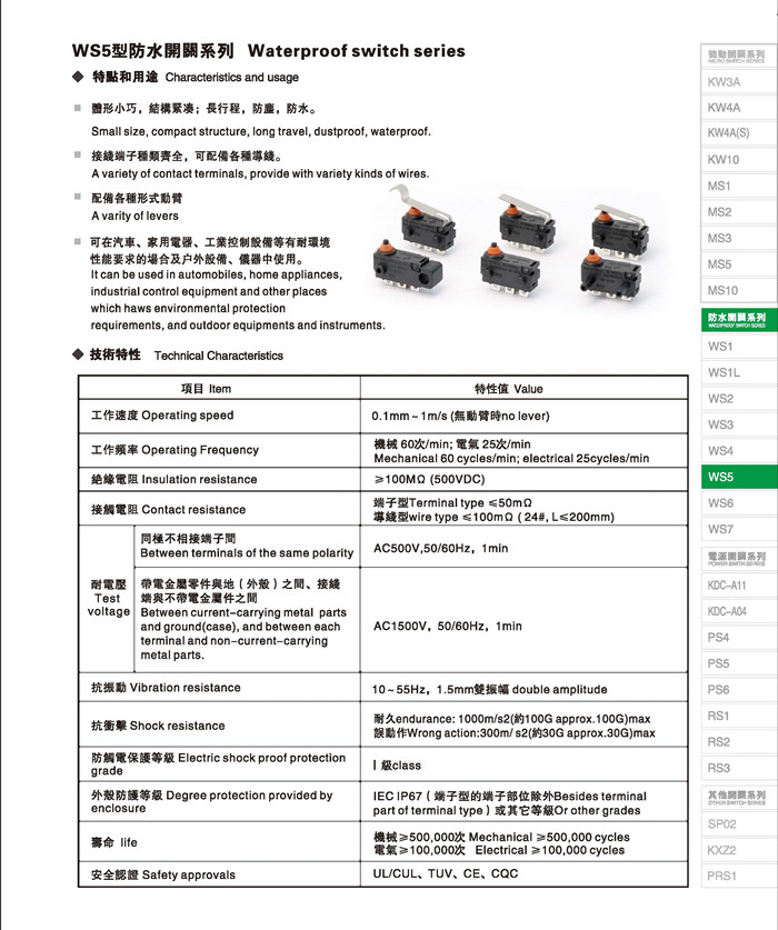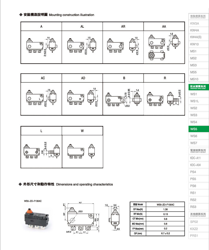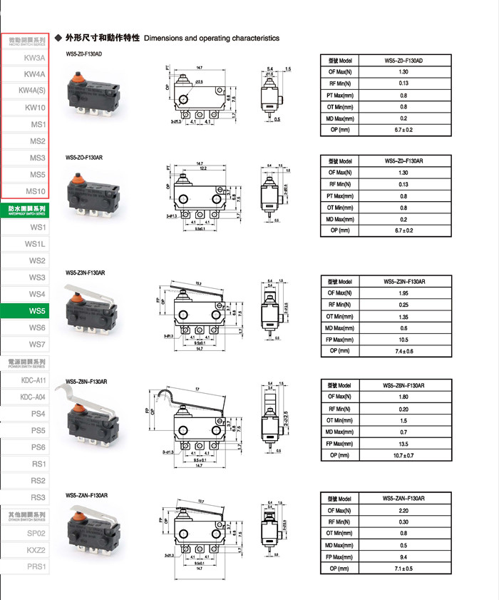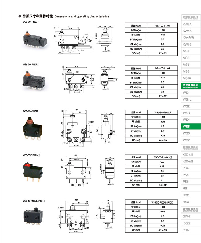 微动开关 Micro switches