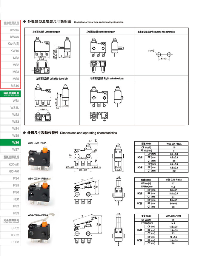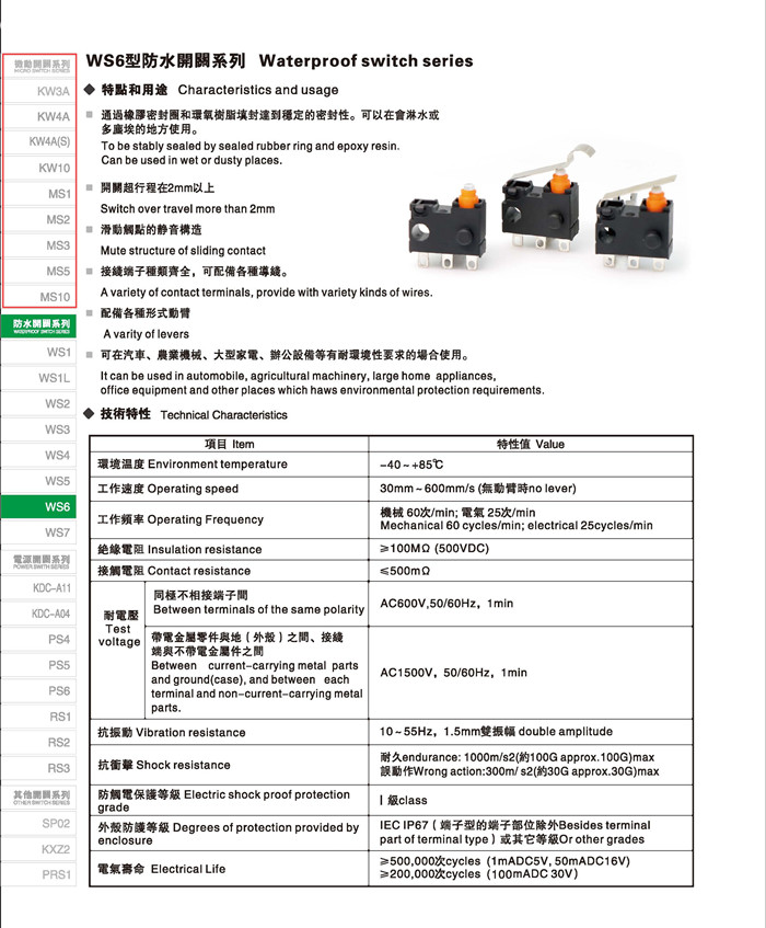 微动开关 Micro switches